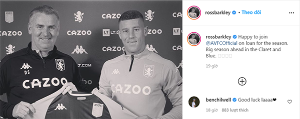 Ngay sau khi đến Aston Villa, Barkley đã đăng tải 1 dòng trạng thái trên trang Instagram.