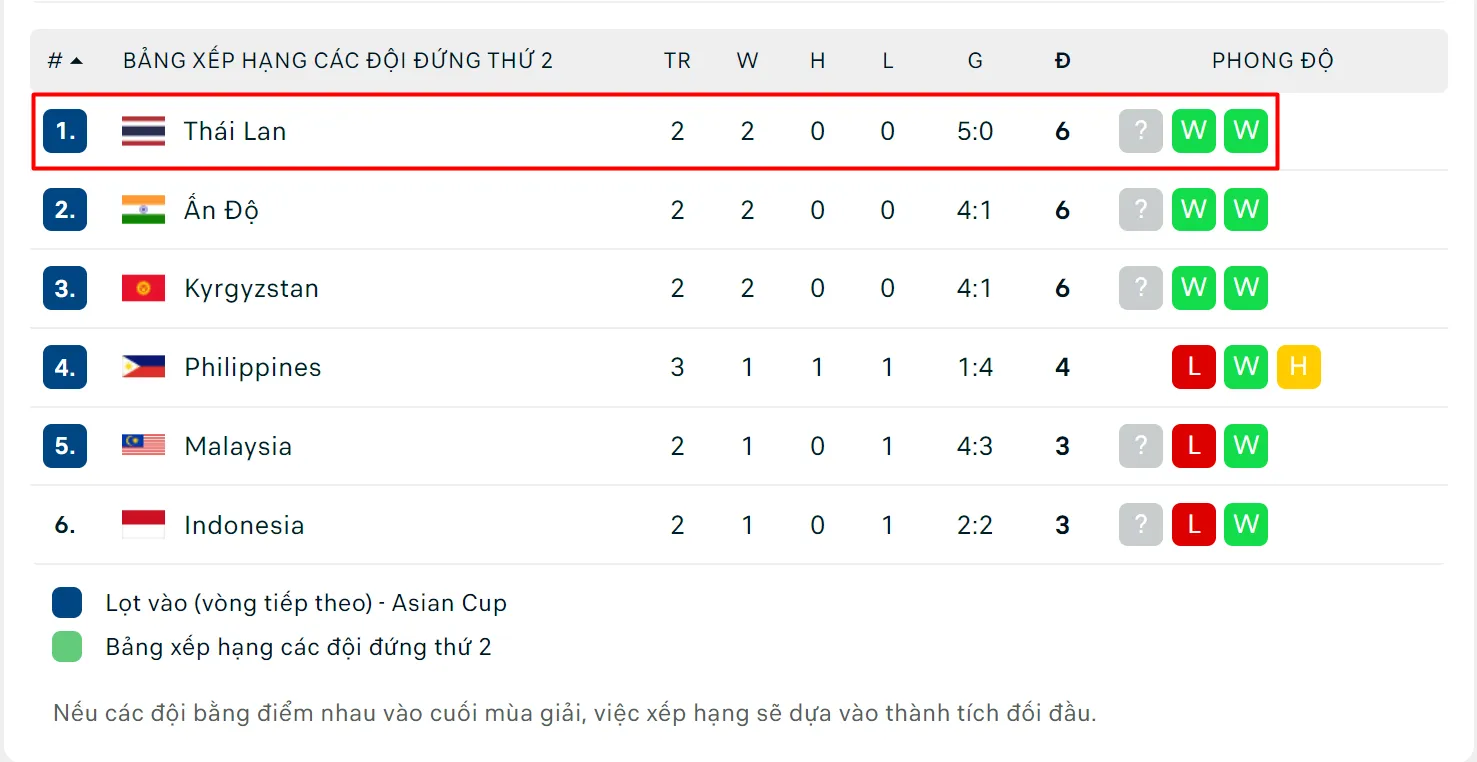 Tuy nhiên sau khi ĐT Palestine đánh bại Philippines với tỷ số 4-0, tấm vé tham dự VCK ASIAN Cup 2023 đã chính thức thuộc về ĐT Thái Lan. Với kết quả này, "Voi chiến" đã chắc chắn xếp trên ít nhất đội đứng thứ 2 tại bảng B tại BXH các đội nhì bảng có thành tích tốt nhất.