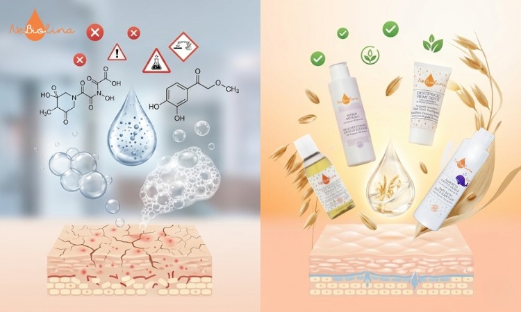 SLS và SLES làm sạch bằng cách phá vỡ màng lipid bảo vệ da. Việc làm sạch bằng những chất tẩy rửa này trong thời gian dài có thể làm da dễ mất nước, khô rát và dễ kích ứng. Và Paraben, một chất bảo quản phổ biến cũng vấp phải nhiều lo ngại về nguy cơ rối loạn nội tiết. Do đó ngày càng nhiều gia đình tìm kiếm sản phẩm có cơ chế bảo quản dịu nhẹ hơn.
