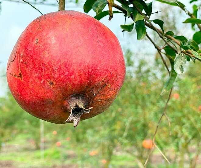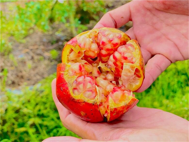 Giống lựu đỏ Peru nổi tiếng với khả năng chịu nắng, chịu nhiệt rất tốt. Khi đưa về trồng tại An Giang, nhiều người từng lo ngại đây là giống cây mới, khó thích nghi. Thế nhưng thực tế canh tác lại cho thấy điều ngược lại: cây bắt đất nhanh, sinh trưởng mạnh và phát triển rất phù hợp với điều kiện khí hậu, thổ nhưỡng địa phương. Nông dân chỉ cần canh tác tương tự như các loại cây có múi như bưởi, cam, quýt là có thể chăm sóc tốt.