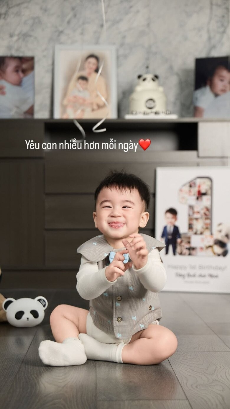 Có em rồi, cuộc sống thật đơn giản, chỉ cần em ăn ngon, ngủ ngoan, mỗi bình sữa, bát cháo em ăn hết mà mẹ vui như đạt thành tựu trong sự nghiệp vậy. Tuổi mới mẹ vẫn sẽ luôn bên em, dành cho em nhiều thời gian nhất có thể, cùng em viết tuổi thơ thật ngọt ngào nhé. Mẹ yêu em nhiều hơn mỗi ngày”.