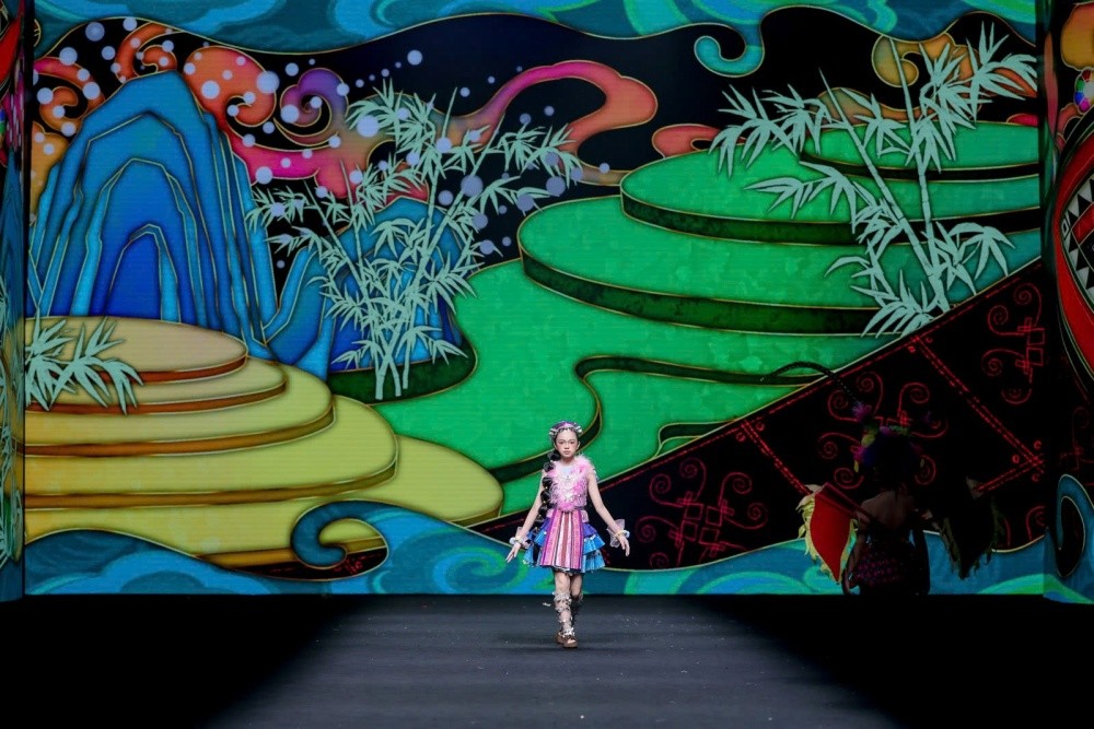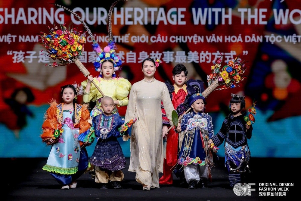 Khoảnh khắc kết màn đầy cảm xúc là khi dàn mẫu nhí cùng gửi trao tới tất cả khách mời những cành hoa giấy Thanh Tiên - dòng hoa giấy truyền thống của Huế được các nghệ nhân chế tác và gửi gắm sang Thâm Quyến. Mỗi cánh hoa mỏng manh nhưng rực rỡ chính là biểu trưng cho sức sống trường tồn của di sản Việt Nam, tinh thần Việt Nam được chính thế hệ măng non gửi trao đến bạn bè quốc tế.