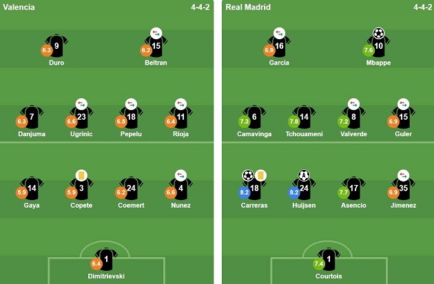 Real Madrid: Alvaro Carreras (65'), Kylian Mbappe (90'+1)