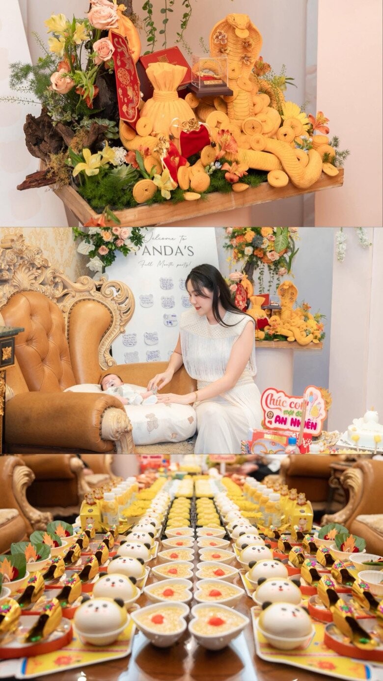 MC Mai Ngọc khoe mâm cúng đầy tháng do mẹ chồng chuẩn bị cho bé Panda.