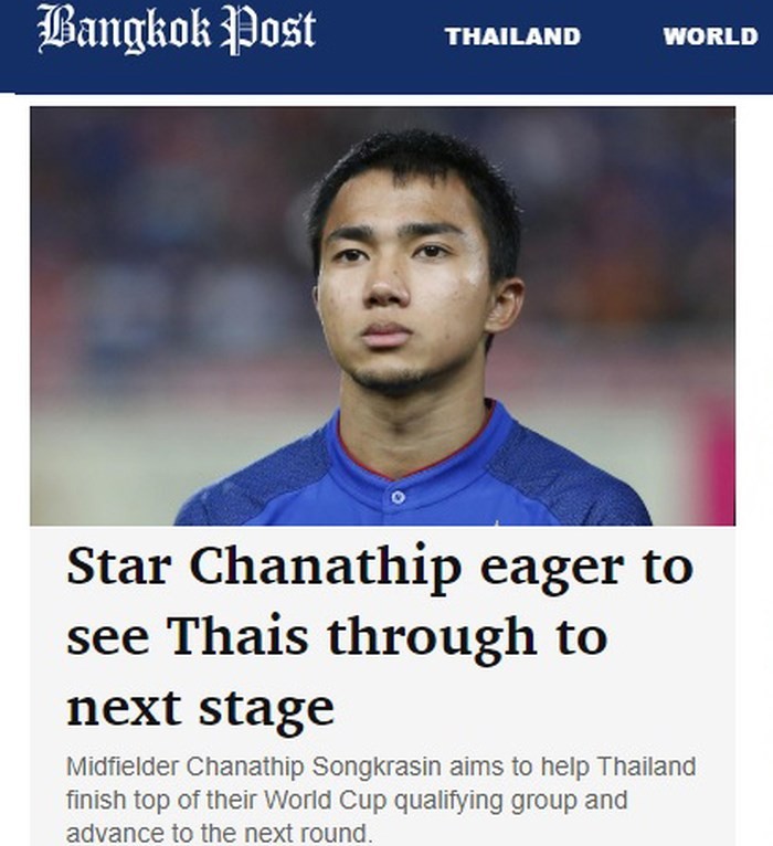 Chia sẻ với truyền thông Thái Lan mới đây, Chanathip Songkrasin tỏ ra rất tự tin: “Mục tiêu của tôi là giúp đội tuyển quốc gia Thái Lan đứng đầu bảng G. Tôi muốn chiến thắng tất cả trận đấu của vòng bảng."