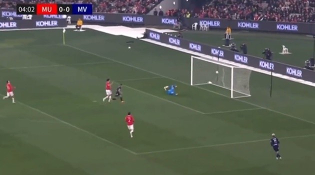 Trước một đối thủ bị đánh giá thấp hơn hẳn, Man Utd nhanh chóng cho thấy sự áp đảo với lối chơi pressing trên toàn mặt sân. Nhưng khi lợi thế còn chưa được thiết lập, họ đã phải nhận bàn thua sau một tình huống phản công sắc nét của Melbourne.
