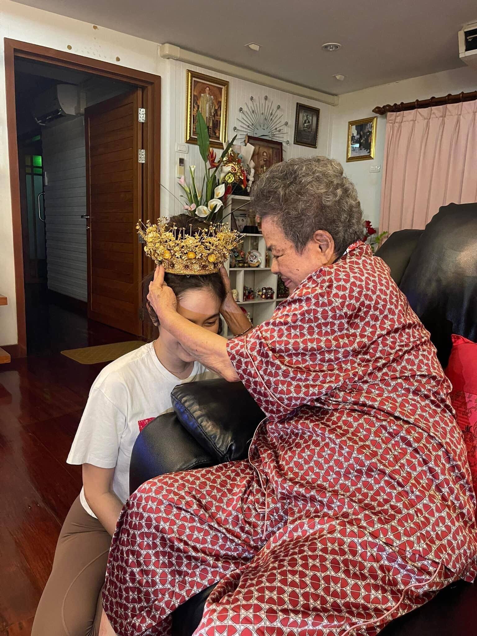 Chia sẻ về người bạn đời của mình, Nong Poy bày tỏ: “Tôi cảm thấy anh ấy chính là câu trả lời cho cuộc sống của tôi. Tôi đã nói với anh Oak vài ngày trước rằng tôi rất may mắn. Tôi may mắn hơn cả người phụ nữ kết hôn với một hoàng tử. Anh ấy có thể làm mọi thứ vì tôi. Tôi không còn gì để hối hận”.