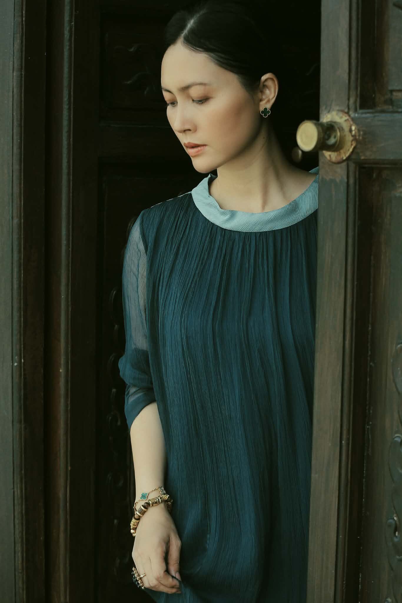 Hải Yến gây ấn tượng với vẻ đẹp dịu dàng, nền nã của người phụ nữ Á Đông trong phim Người Mỹ trầm lặng.