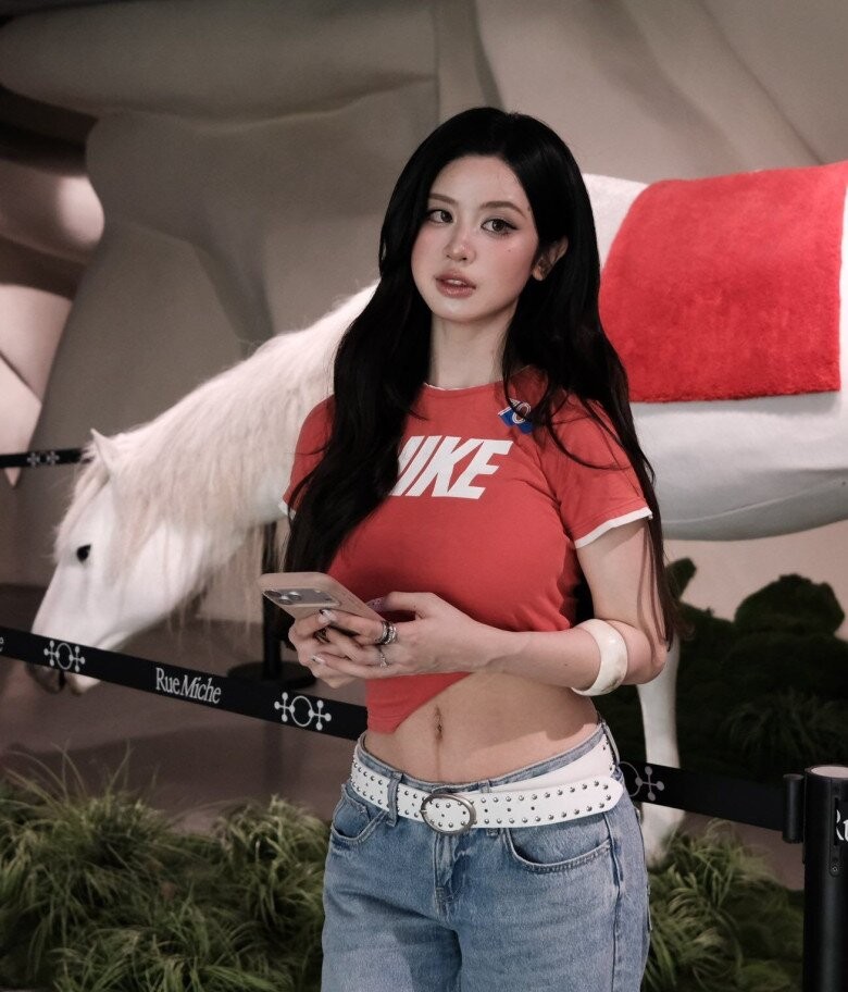 Ở những hình ảnh đời thường khác, gen Z cũng thoải mái khoe vòng hai với đường sọc nâu thấy rõ.