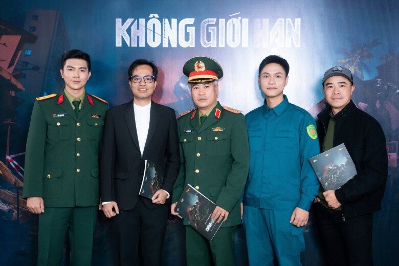 Diễn viên Phạm Quỳnh Dương (giữa) cùng ekip Không Giới Hạn tại buổi ra mắt phim.