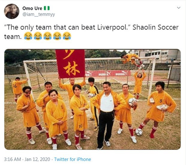 Chứng kiến sự hủy diệt mà Liverpool đang thể hiện, NHM tin rằng lúc này chỉ duy nhất 1 đội bóng có thể đánh bại họ. Đó là "Đội Bóng Thiếu Lâm" do Châu Tinh Trì dẫn dắt.