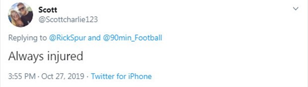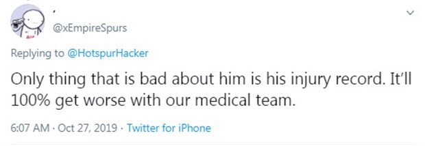 "Điều tệ duy nhất ở anh ta đó là lịch sử chấn thương quá nhiều. Mọi thừ càng tệ hơn khi rơi vào tay đội ngũ y tế của chúng ta."