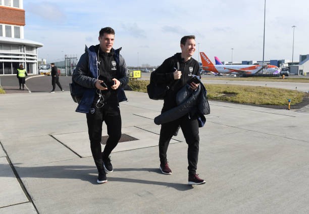 Các cầu thủ Arsenal đã rời sân bay Luton của nước Anh để đến Belarus để chuẩn bị cho trận đấu ở vòng 32 đội Europa League.