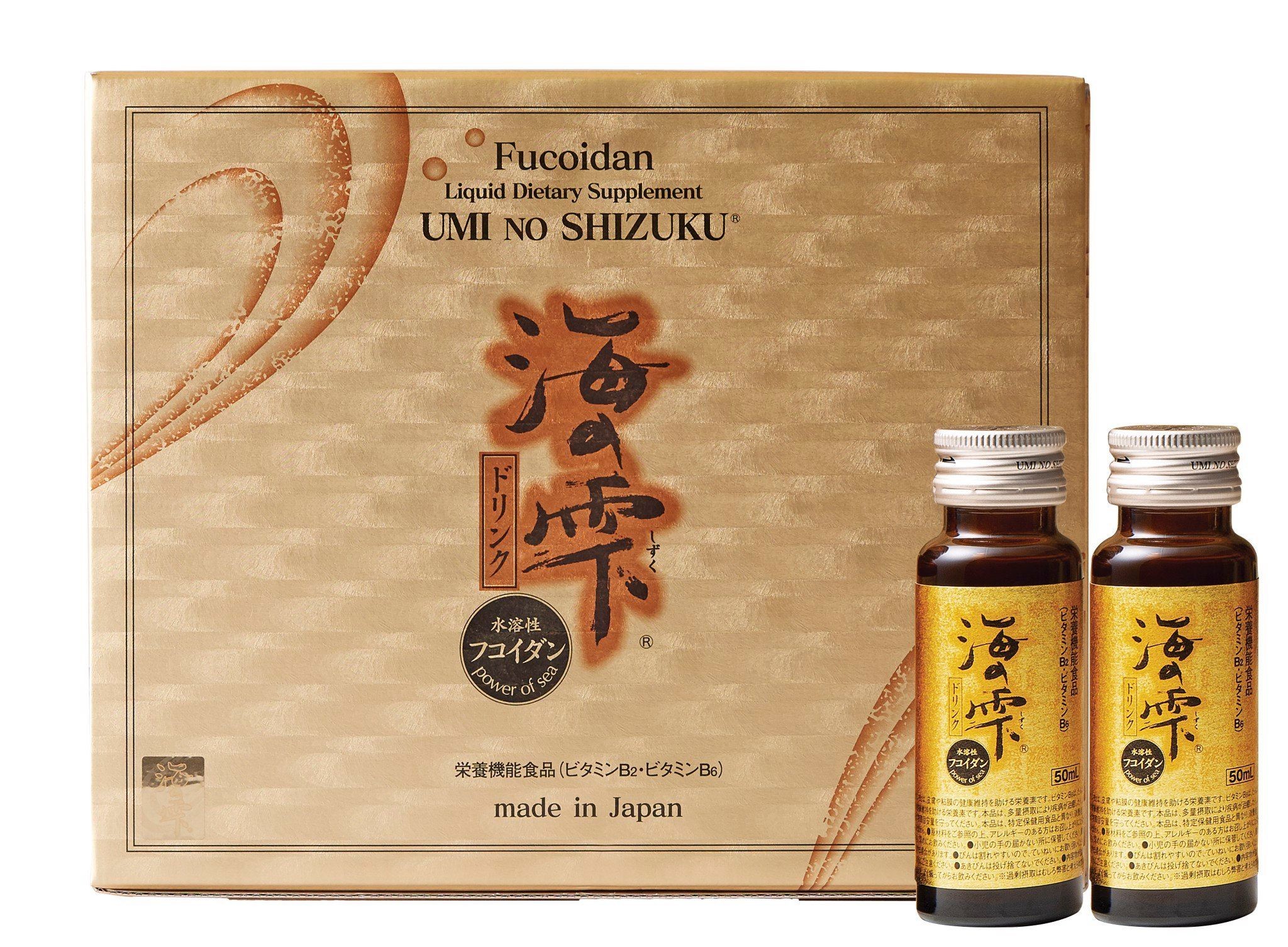 Thực phẩm bảo vệ sức khỏe Fucoidan Umi No Shizuku là sản phẩm được phân phối bởi công ty Umi No Shizuku và thuộc tập đoàn Kamerycah Foods – nhà sản xuất thực phẩm biển hàng đầu tại Nhật Bản. Khi nhập khẩu về Việt Nam, sản phẩm tiếp tục trải qua quy trình xét duyệt và chỉ được phân phối sau khi được cấp phép bởi Bộ Y tế theo quy định hiện hành. Sản phẩm được bào chế dưới dạng viên nang và dạng nước uống tiện lợi, phù hợp với nhiều đối tượng và lứa tuổi khác nhau.