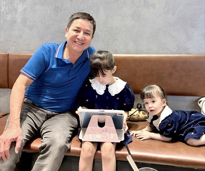 Mới đây, NSƯT Chí Trung đã chia sẻ những khoảnh khắc chơi đùa cùng các cháu vô cùng ấm áp, hạnh phúc. Trong dịp nghỉ lễ, nam nghệ sĩ và bạn gái Ý Lan đã đưa 2 cháu nội đi ra quán cà phê để uống nước, nghỉ ngơi. Chí Trung cùng chia sẻ khoảnh khắc đang ân cần dắt tay cháu gái nhỏ xuống bậc thang.