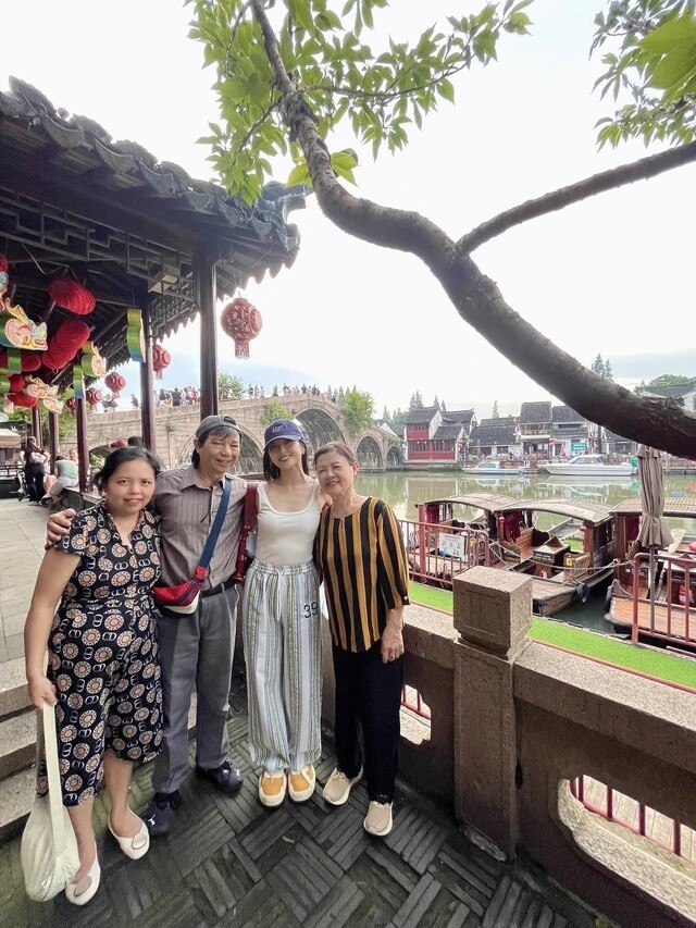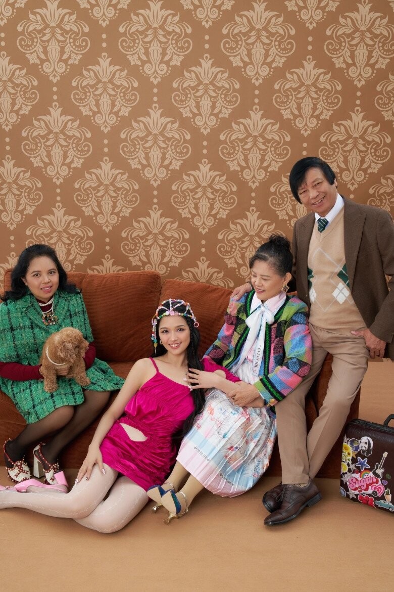 Ca sĩ Suni Hạ Linh bên bố mẹ và chị gái.