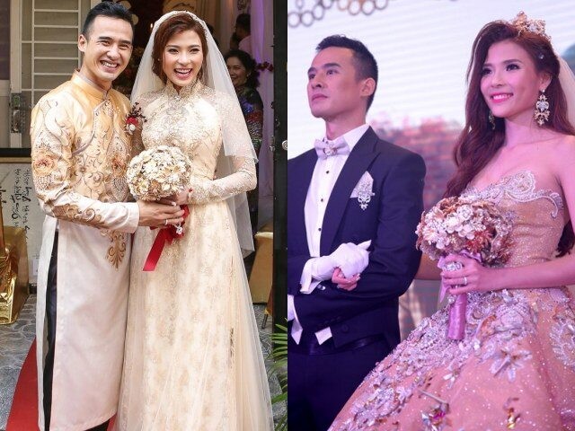 Thúy Diễm và Lương Thế Thành kết hôn vào năm 2016. Ngoài hai bộ váy diện đón khách và đi mời rượu tại các bàn với giá mỗi chiếc trị là 90 triệu đồng, thiết kế phong cách công chúa mà cô dâu mặc làm lễ trên sân khấu có giá 250 triệu đồng.