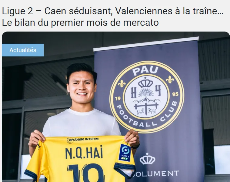 Mới đây tờ MALigue 2 chuyên viết về giải hạng 2 Pháp đã tổng kết về tháng đầu tiên của kỳ chuyển nhượng hè 2022. Trong số những đội bóng ở Ligue 2 được tờ báo này điểm mặt, Pau FC cũng góp mặt với kế hoạch mua sắm "khôn ngoan" và đáng chú ý nhất là sự xuất hiện của Quang Hải.