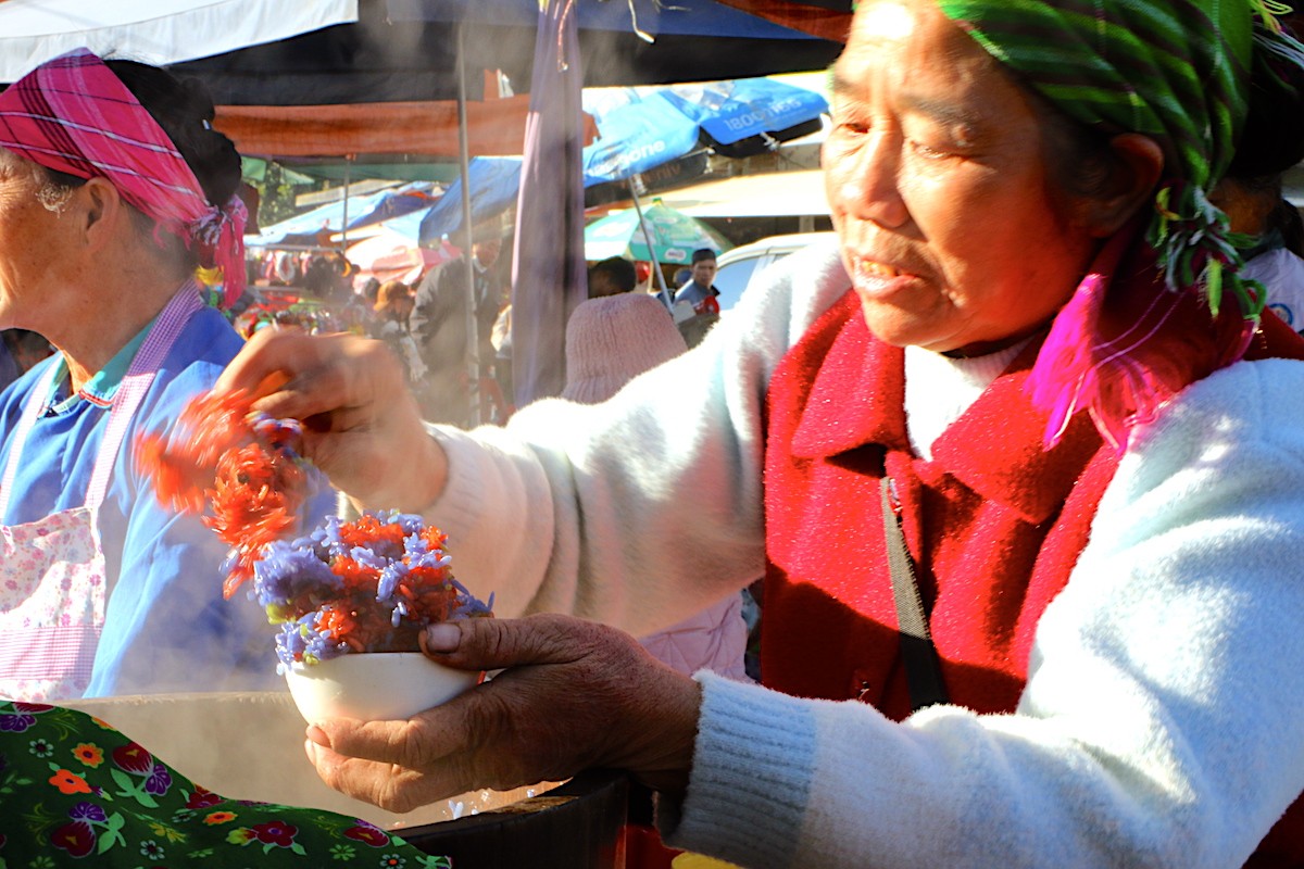 Đến chợ có thể thưởng thức những món đặc sản vùng cao