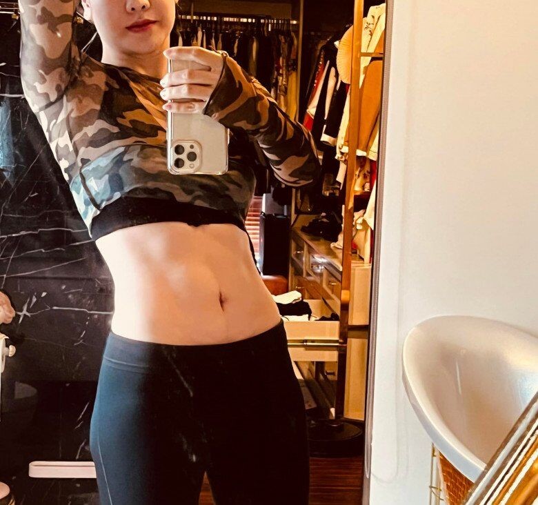 Thành quả của việc tập đúng, ăn đủ của Nhật Kim Anh là vòng eo thon, cơ bụng săn chắc.