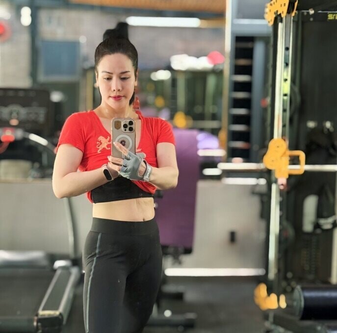 Sau sinh, cô cũng không tập nặng mà chú trọng việc tập nhẹ nhàng và đúng kỹ thuật dành cho mẹ bỉm sữa. Huấn luyện viên của cô cũng nhấn mạnh, các mẹ sau sinh nên tập nhẹ, kết hợp dinh dưỡng hợp lý để vừa giữ dáng vừa đảm bảo sức khỏe.