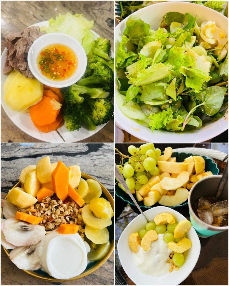 Cô từng chia sẻ hình ảnh những bữa ăn đầy ắp rau củ quả giúp giữ dáng và bổ sung vitamin giúp làm đẹp da từ bên trong.