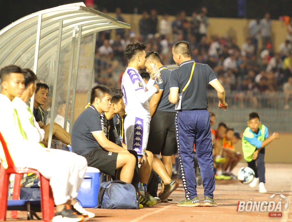 Sau khi bị dẫn bàn với bàn thắng do công Thanh Trung, HLV Chu Đình Nghiêm lập tức tung Quang Hải vào sân để thay cho Thành Lương, Oseni thay Đức Huy. Qua đó, Hải "con" cùng Hùng Dũng tạo thành bộ đôi để quán xuyến tuyến giữa đội bóng Thủ Đô.