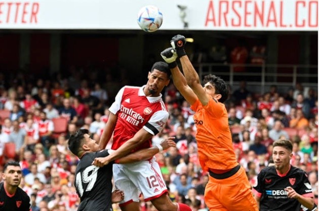 Cụ thể, trong một tình huống bị vây ráp bởi 3 cầu thủ Sevilla, Saliba vẫn xoay sở cực kỳ khéo léo trước khi tung ra đường chuyền chuẩn xác cho đồng đội. Có thể dễ dàng nhận ra sự kết hợp hoàn hảo giữa chất thép và yếu tố nghệ sĩ nơi đá tảng 21 tuổi. Thậm chí, anh còn thi đấu có phần chững chạc hơn so với hai đối tác nơi hàng thủ ở trận đấu vừa qua.