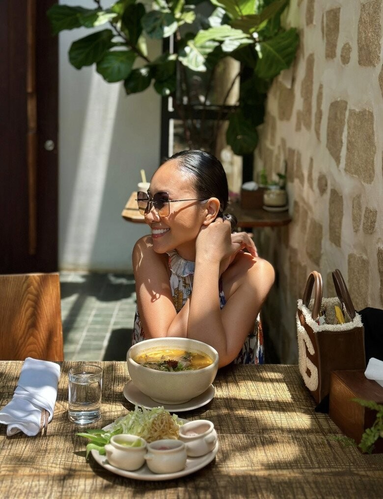 Đoan Trang chia sẻ khoảnh khắc đời thường khi ở Đà Lạt: "Hôm qua đi trail (chạy đường mòn - PV) rồi về ngủ trễ nên sáng nay xác định nướng một giấc cho đã. Vậy mà các em vẫn hiểu và chừa phần ăn sáng tô bún bò thật ngon cho mình... ăn trưa luôn!".