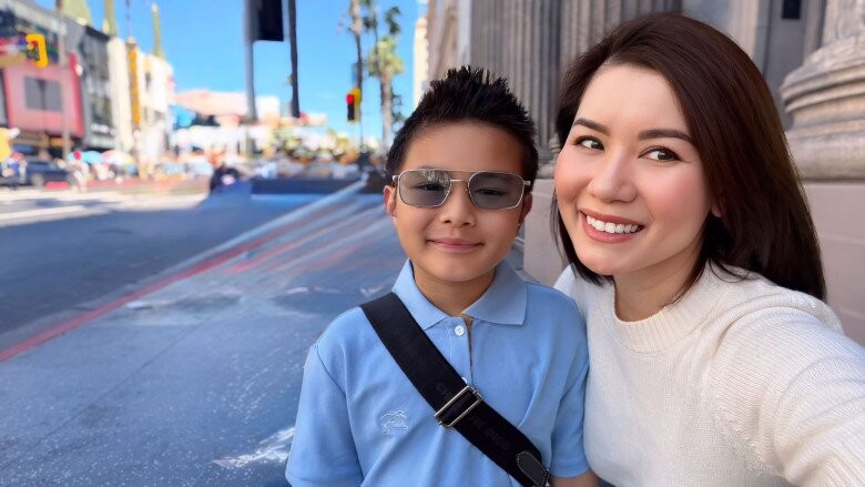 Vợ cũ Đan Trường - doanh nhân Thủy Tiên đưa con trai Thiên Từ đi theo trong chuyến công tác. Cô tiết lộ: "A little bit of work and a little bit of fun" (Tạm dịch: Một chút công việc và một chút tận hưởng niềm vui)
