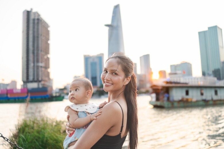 Chồng H’Hen Niê chia sẻ khoảnh khắc bình dị bên vợ con và nói: “Chiều hoàng hôn Sài Gòn, ba đạp xe chở 2 mẹ con ra bờ sông ngắm nắng tắt. Tôi từng nhiều lần đến đây để chụp và ngắm hoàng hôn, nhưng có lẽ đây là khoảnh khắc đẹp nhất. Chợt nhận ra, hoàng hôn đẹp nhất không nằm nơi chân trời hay bất cứ đâu, mà ở ngay bên cạnh hai mẹ con”.