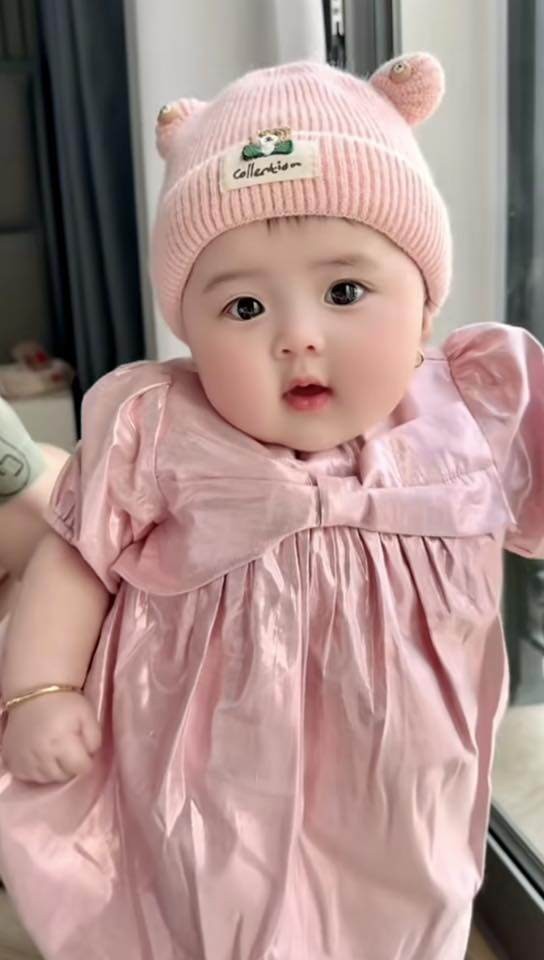 Phương Lê khoe con gái đáng yêu như búp bê với đôi mắt to, má phúng phính trắng hồng. Kèm theo hình ảnh, cô chia sẻ: "Búp bê của ba Bình mẹ Phương xin chào cô chú ạ".