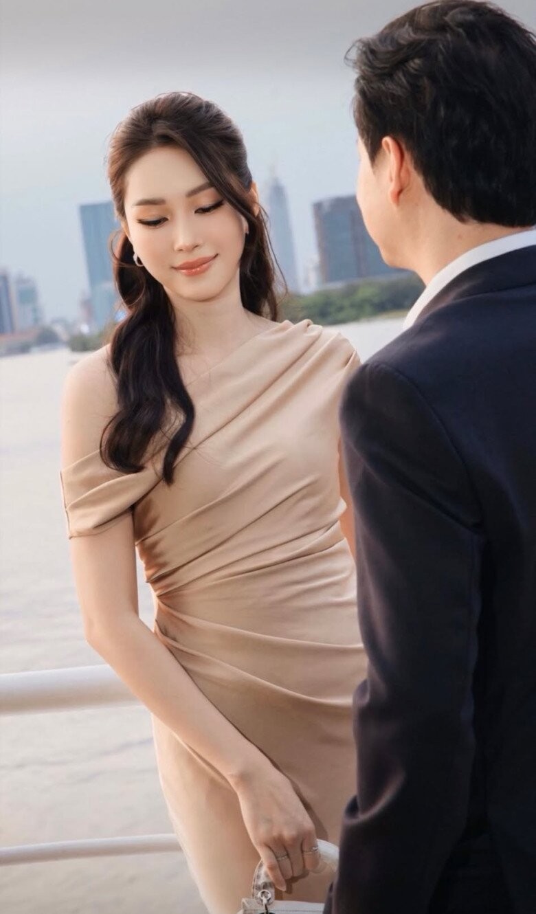 Mới đây, nàng hậu gây chú ý khi đăng tải khoảnh khắc lãng mạn bên chồng là doanh nhân Trung Tín. Cả 2 diện trang phục lịch sự, sang trọng cùng tham dự sự kiện.