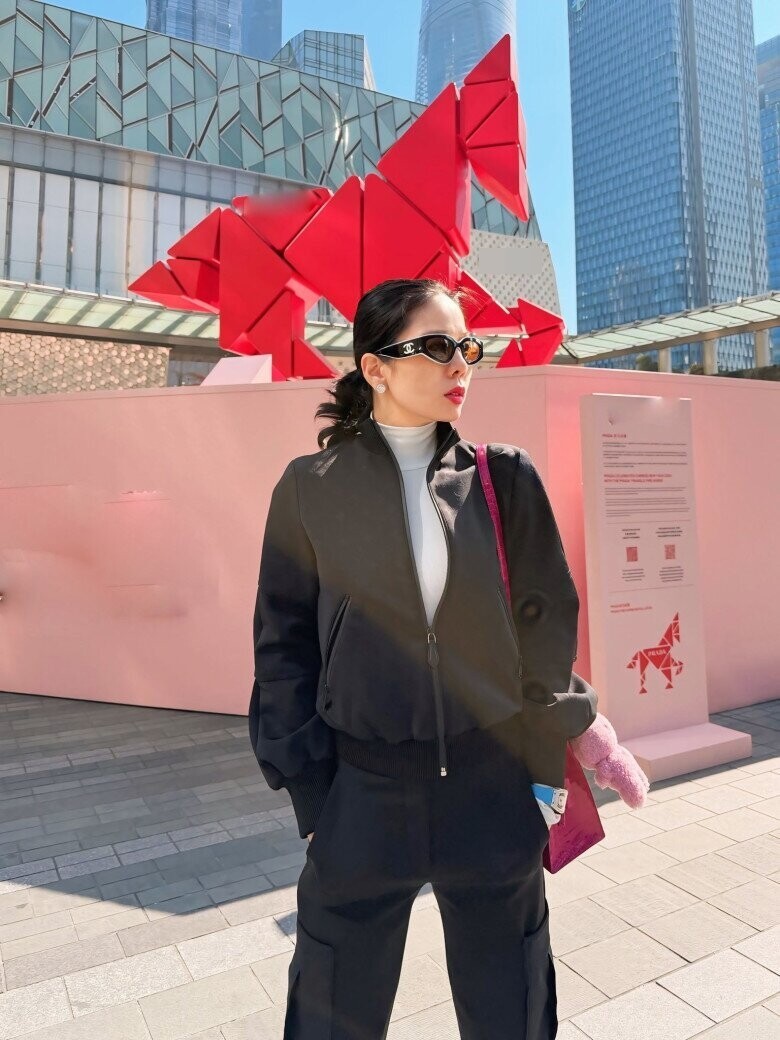 Lệ Quyên check-in tại Thượng Hải và cho biết: "Đến tận bây giờ mới đi Trung Quốc chơi, ai nghe vậy cũng buồn cười dù đi vòng quanh thế giới rồi."