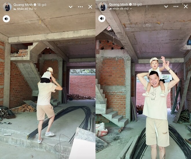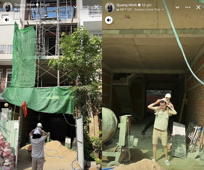 Mới đây, trên trang cá nhân, Quang Minh chia sẻ khoảnh khắc cùng con trai đến thăm một công trình đang xây, nhanh chóng thu hút sự chú ý của đông đảo khán giả. Trong loạt hình ảnh được đăng tải, nam diễn viên thoải mái bế con đi dạo quanh khu nhà còn dang dở, thể hiện rõ niềm vui và sự háo hức khi chứng kiến tổ ấm tương lai dần thành hình.