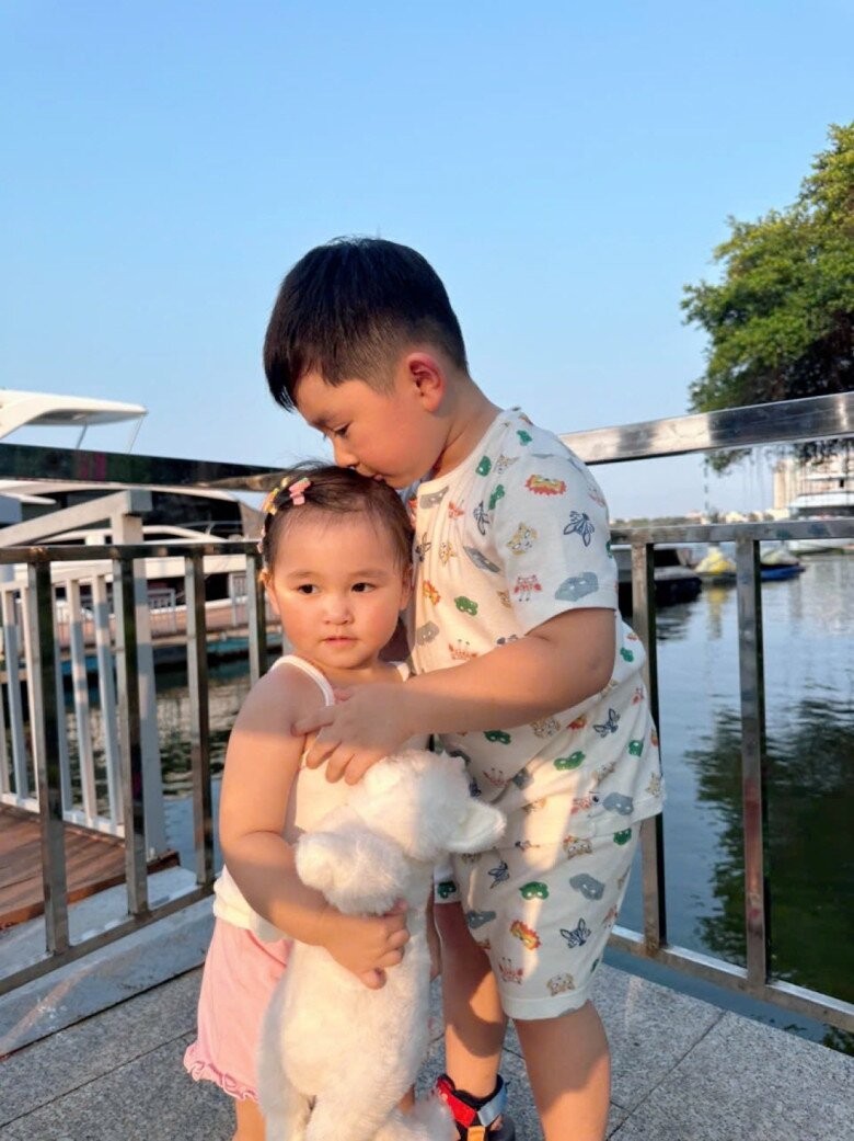 Lý Thùy Chang - vợ của Chi Bảo - chia sẻ hình ảnh hai con thân thiết, tình cảm, kèm lời nhắn đầy yêu thương: "Sáng sớm 2 anh em đưa nhau đi dạo bờ sông tập thể dục. Anh 3 Gia Khang thương và cưng em Gia Linh lắm các cô ạ. Mẹ cháu cũng an tâm sau này có anh bảo vệ em rồi".