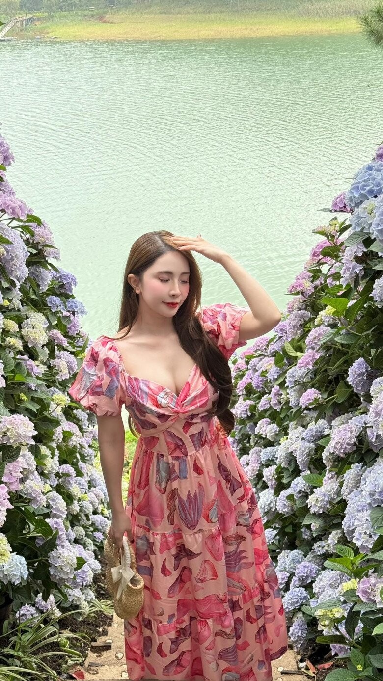 Quỳnh Nga thả dáng bên hoa cẩm tú cầu, khoe nhan sắc rực rỡ khi đón hè tại Đà Lạt, đồng thời “thả thính” ngọt ngào: "Anh có tin vào 'yêu từ cái nhìn đầu tiên' không, hay để em lướt qua lần nữa?".