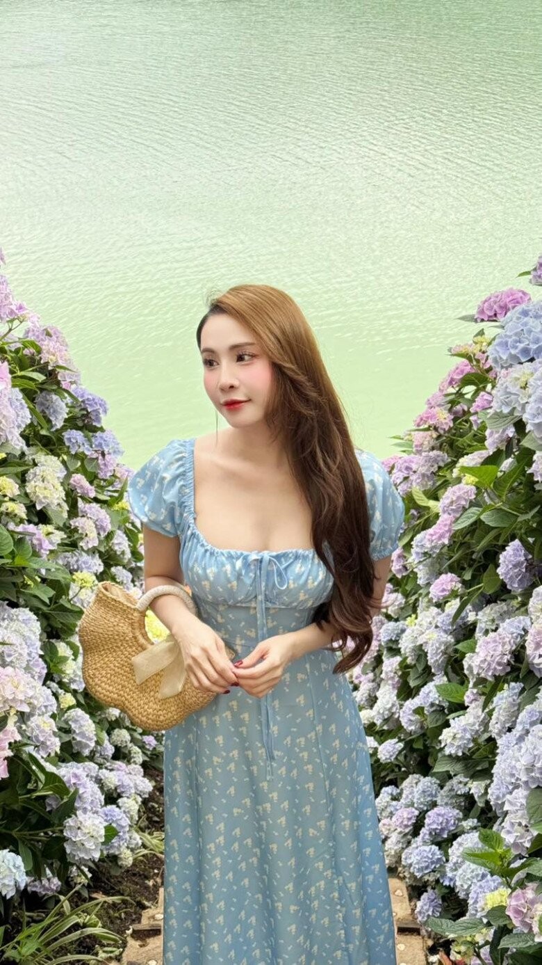 Ca sĩ Hiền Thục diện “cây hồng” trẻ trung ở tuổi U50, tạo dáng bên cây hoa anh đào đầy ngọt ngào và hài hước chia sẻ: "Để tóc dài mà lại uống bia".
