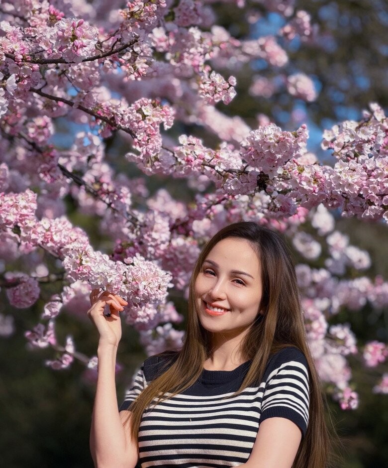 Diễm Hương chia sẻ những khoảnh khắc tận hưởng mùa xuân rực rỡ tại Vancouver, đồng thời tiết lộ bí quyết chăm sóc da sau sinh. Người đẹp cho biết: “Nỗ lực chăm da sau sinh đã được đền đáp. Vancouver đã bước vào xuân thực sự, khắp nơi mai vàng nở rộ, đào hồng trắng khoe sắc. Những con đường hồng khiến mọi người như tái sinh sau những tháng âm u mưa và giá lạnh. Cảnh sắc thêm vui tươi bởi những bông hoa tulip vàng rung rinh trong gió, nhìn thật vui mắt trong nắng xuân vàng ấm áp”,