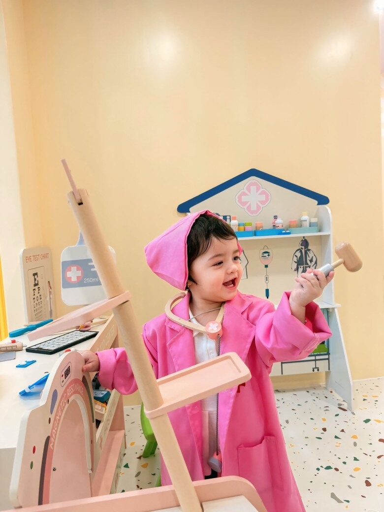 Con gái Nhật Kim Anh gây thích thú khi "đóng vai" thành bác sĩ và hào hứng chụp ảnh: "Cô chú thấy con làm bác sĩ có ổn lắm không ạ?".