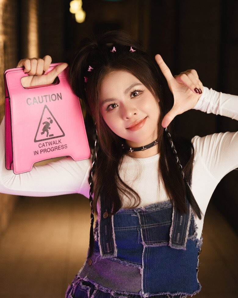 Vân Trang lên đồ trẻ trung khi đi sự kiện, hài hước tự nhận là “con gái” và chia sẻ: "Con là bé Nì (tên thân mật của con gái lớn Queenie - PV) lúc lớn, con xin chào cô chú, mẹ con mới mua cho con 4 cây kẹp màu hồng bé nhỏ và bắt con gắn lên đầu nè".