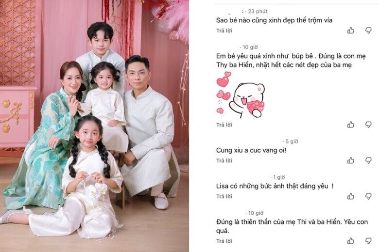 Dù còn nhỏ tuổi, con gái út Lisa đã thể hiện sự tự tin và linh hoạt. Với khuôn mặt bầu bĩnh và đôi mắt tròn, cô bé liên tục thay đổi biểu cảm từ ngơ ngác đến tinh nghịch. Sự dạn dĩ trước ống kính của Lisa khiến nhiều người dự đoán cô bé có tiềm năng trở thành người mẫu nhí trong tương lai.
