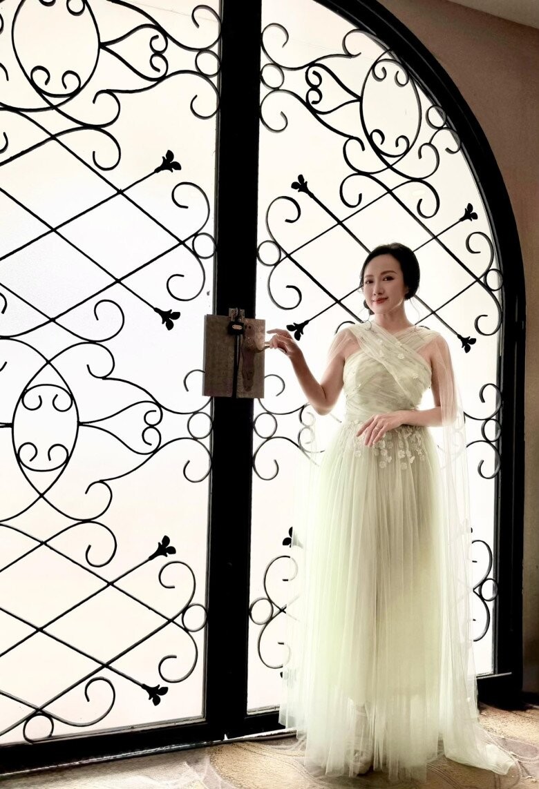 Trên trang cá nhân, MC Hoài Anh diện váy dạ hội bồng xòe, hóa thân thành “công chúa” và viết dòng trạng thái: "Một ngày làm công chúa".