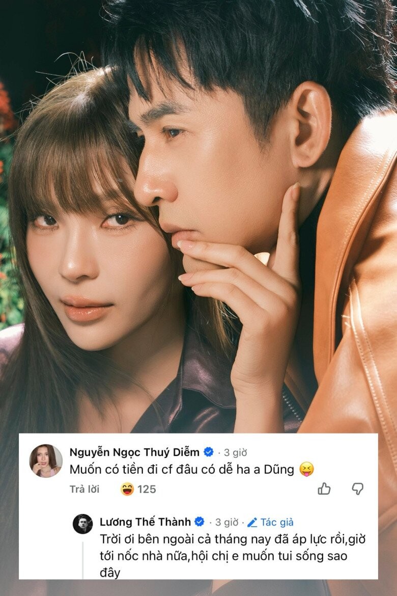Đáng chú ý, dưới phần bình luận, Thúy Diễm cũng nhanh chóng “trêu chọc” chồng khi viết: “Muốn có tiền đi cà phê đâu có dễ ha anh Dũng”. Đáp lại, Lương Thế Thành không ngần ngại than thở: “Trời ơi bên ngoài cả tháng nay đã áp lực rồi, giờ tới nóc nhà nữa, hội chị em muốn tui sống sao đây”. Màn tung hứng duyên dáng của cặp đôi khiến người hâm mộ thích thú, đồng thời càng thêm ngưỡng mộ cuộc sống hôn nhân hài hước, gần gũi của hai người.