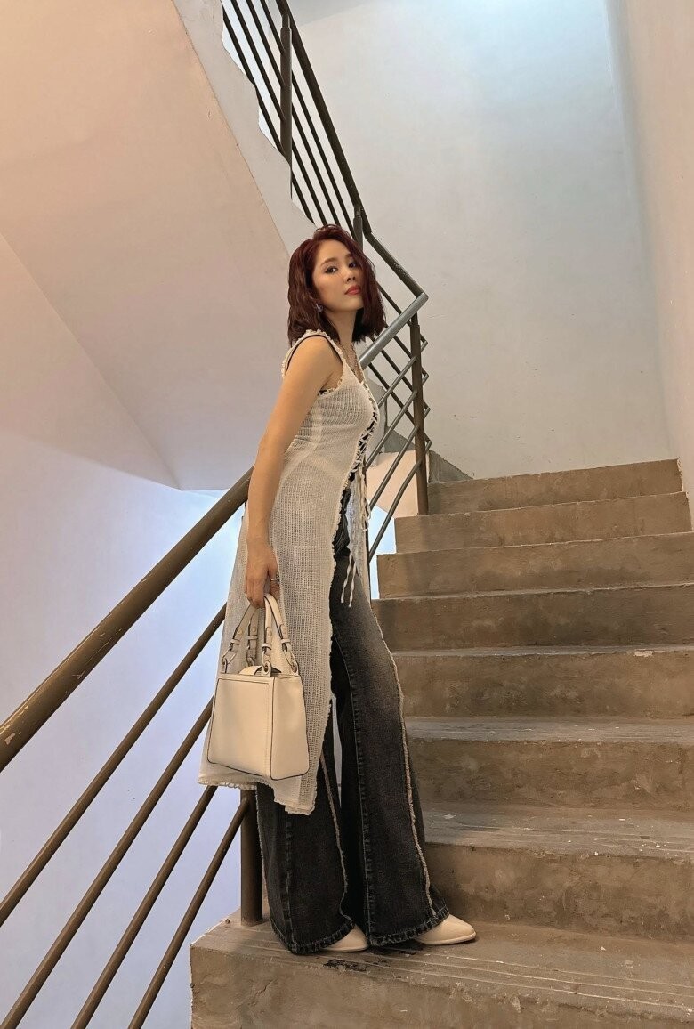 Lê Phương gây chú ý khi diện váy len mỏng phối cùng jeans, được khen trẻ trung như Gen Z. Nữ diễn viên hài hước chia sẻ: “Mọi người cứ ngắm tự nhiên”.