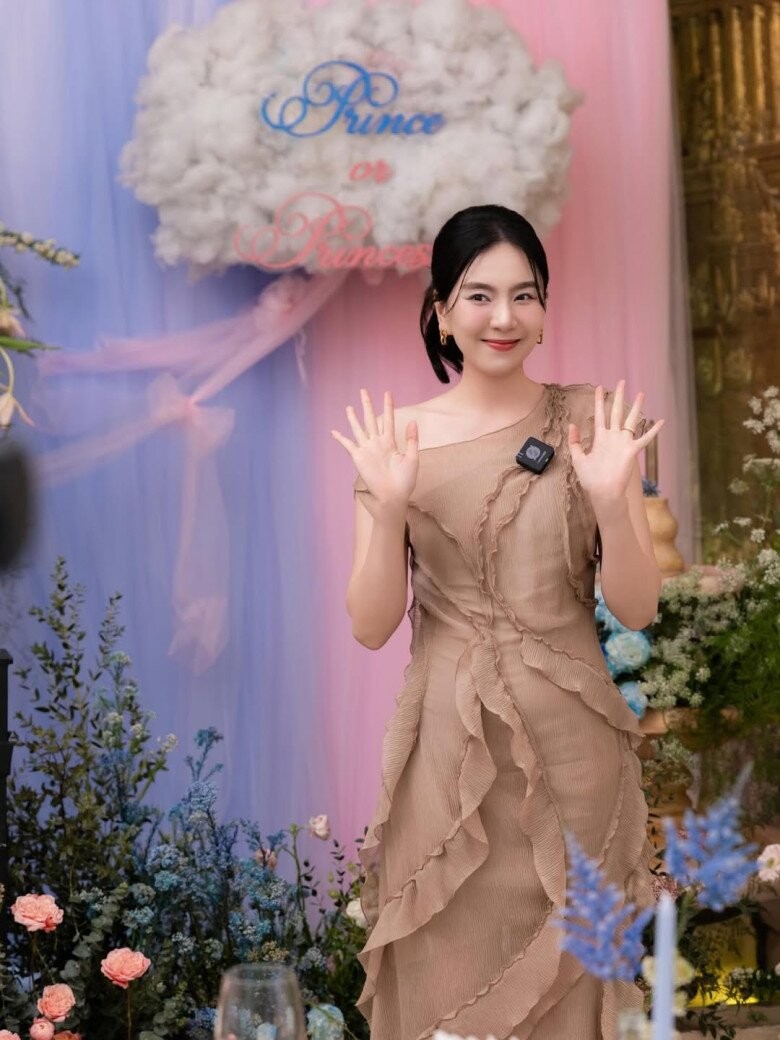 MC Mai Ngọc khoe nhan sắc nhẹ nhàng và thần thái cuốn hút trong buổi công bố giới tính của em gái chồng.
