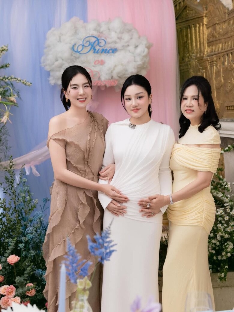 Trong ảnh, Mai Ngọc xuất hiện với diện mạo rạng rỡ, diện chiếc váy tông be thanh lịch. Lối trang điểm nhẹ nhàng, mái tóc buộc gọn càng làm nổi bật vẻ đẹp dịu dàng, nữ tính của nữ MC. Không chỉ ghi điểm về ngoại hình, Mai Ngọc còn thể hiện sự thân thiết khi đứng sát bên em gái chồng, nhẹ nhàng đặt tay lên bụng bầu như một cách chia sẻ niềm vui gia đình.