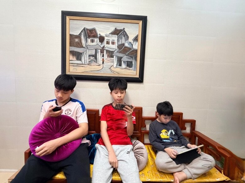 BTV Quang Minh bất lực khi 3 quý tử về thăm bà nhưng chỉ chăm chăm vào điện thoại, thậm chí còn “doạ” phạt để răn đe. Nam MC viết: “Về thăm bà. Xứng đáng mỗi thằng 10 roi”.