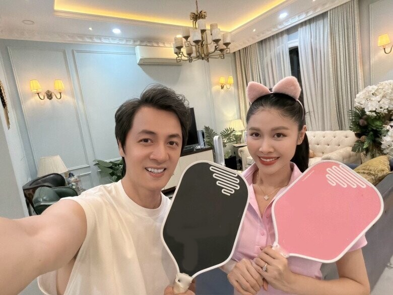 Đăng Khôi khoe ảnh diện đồ thể thao cùng bà xã, ghi lại khoảnh khắc đời thường đầy vui nhộn. Nam ca sĩ hài hước chia sẻ: “Anh hẹn em Píc cờ bôn, ta vờn nhau … thôi thôi không dám hát tiếp. Không là vợ lại không cho đi”.