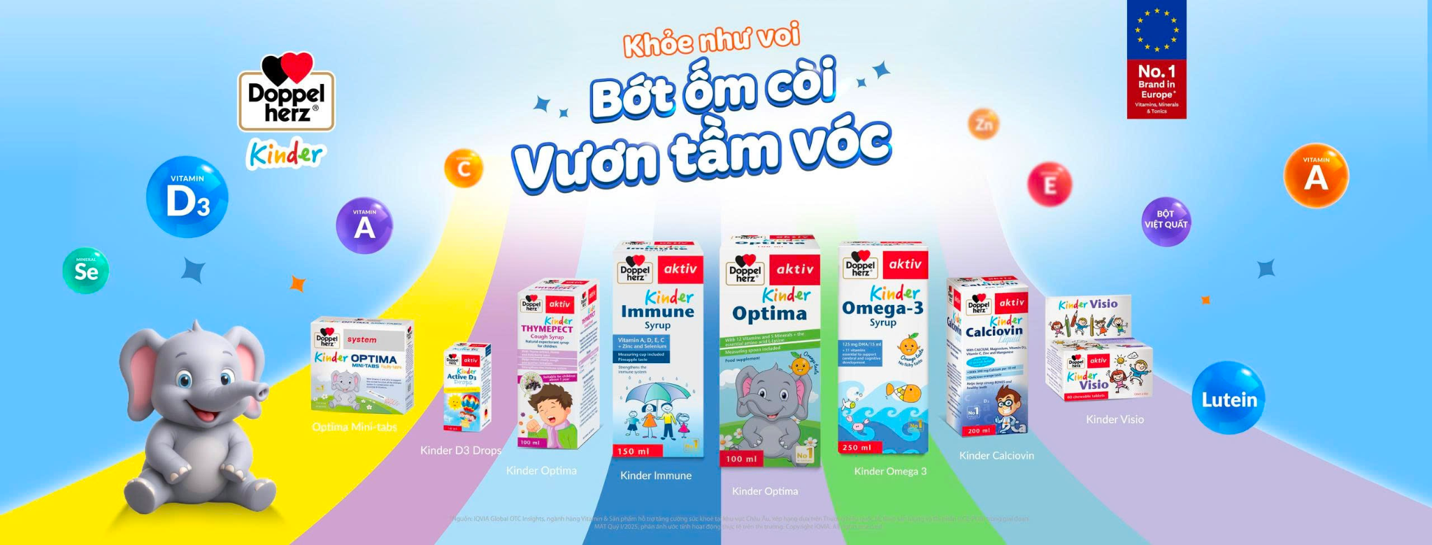 Thay vì một sản phẩm “đa năng”, Doppelherz Kinder phát triển hệ sản phẩm theo từng nhu cầu cụ thể của trẻ. Với những bé biếng ăn, hấp thu kém, Kinder Optima và Kinder Optima Minitab giúp cải thiện vị giác, hỗ trợ tiêu hóa và bổ sung vi chất thiết yếu. Khi bài toán là đề kháng và ốm vặt, Kinder Immune đóng vai trò tăng cường miễn dịch, giúp trẻ khỏe mạnh hơn từ bên trong.